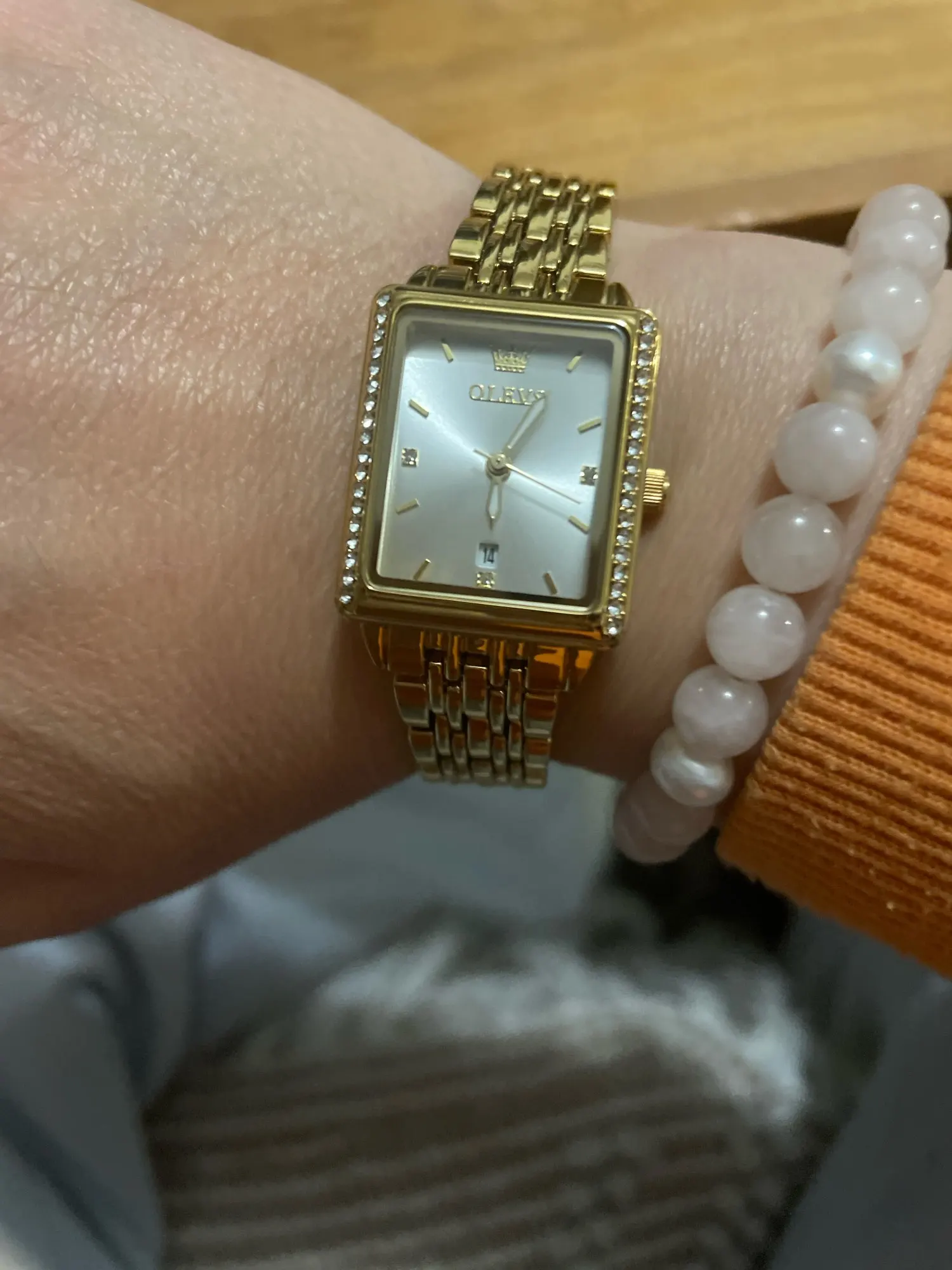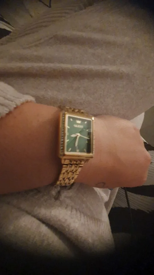 Minimalist quartz watch, combining timeless elegance and practicality. Rectangular stainless steel case of 23×27 mm, 8 mm thick, paired with a matching strap 14 mm wide. Dial with Roman numerals protected by Hardlex glass, reliable quartz movement powered by included battery.